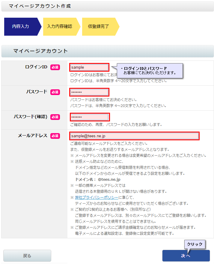 マイページアカウントの作成方法