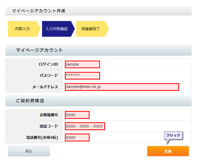入力内容(赤枠内)を確認後、登録ボタンを押してください。