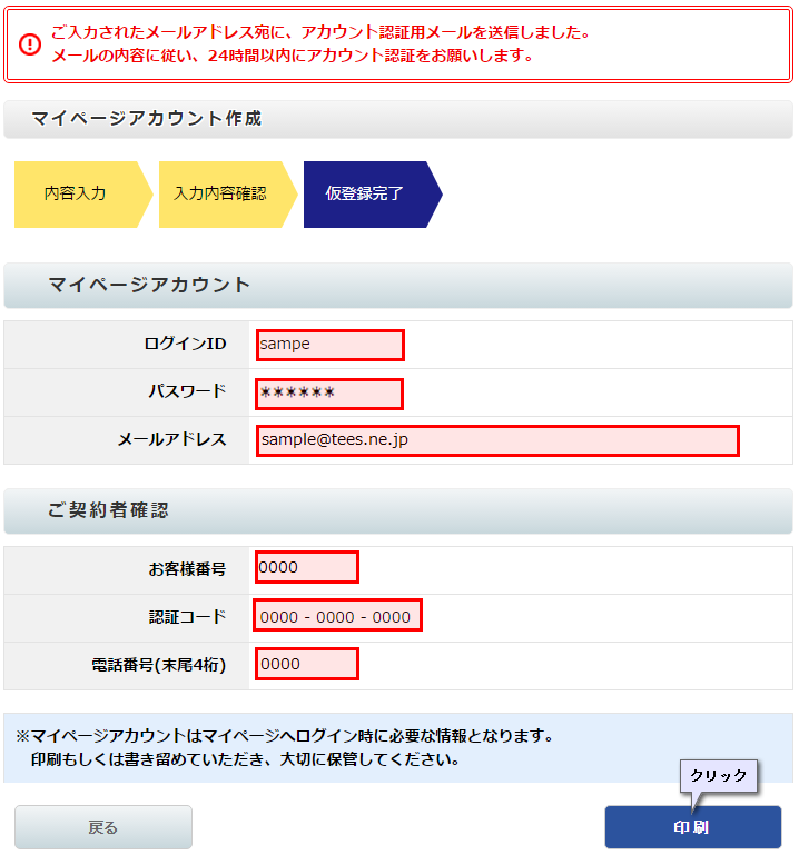 STEP3 仮登録完了