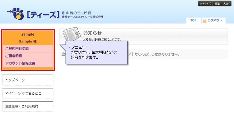 メニューから機能を選択してご利用ください。